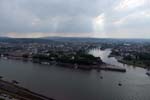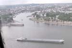 Von der Festung bietet sich ein grandioser Blick auf Koblenz, die Moselmündung und das Deutsche Eck. Gut u sehen: die Kabinen der Seilbahn über den Rhein