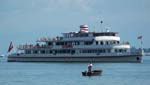 | Bleibt noch nachzutragen, dass es auf dem Bodensee noch ein ganz besonderes Schiff gibt, das ich leider nicht vor die Linse bekommen habe: Den Raddampfer Hohentwiel, ehemals Flaggschiff der Königlich Württembergischen Dampfschifffahrt. Darüber habe ich diese Dokumentation im TV aufgenommen. Im James-Bond-Film "Ein Quantum Trost" ist das Schiff auch kurz zu sehen … | |||