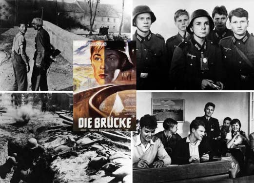 Sieben Jugendliche einer deutschen Kleinstadt werden in den letzten Kriegstagen noch eingezogen. Immerhin kann ihr Lehrer erreichen, daß die Halbwüchsigen nicht an die Front müssen. Statt dessen sollen sie mit Unteroffizier Heilmann (Günter Pfitzmann) eine kleine, militärisch unwichtige Brücke vor ihrer Heimatstadt verteidigen. Auf einem Erkundungsgang wird Heilmann als vermeintlicher Deserteur erschossen. Als ein Junge bei einem Tieffliegerangriff getötet wird, stürzen sich die anderen in einer Mischung aus falschem Nationalstolz und Rachedurst in ein blutiges Gemetzel mit den überraschend anrückenden US-Truppen. «Die Brücke» war der erste abendfüllende Spielfilm des Schauspielers Bernhard Wicki. Das bedeutendste deutsche Antikriegsdrama fand auch im Ausland große Beachtung. 1959 wurde es für den Oscar als bester Auslandsfilm nominiert. |
