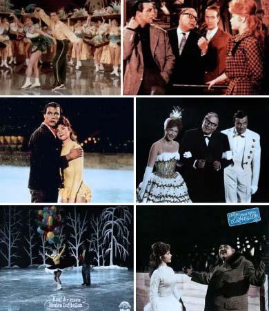 | Hans (Toni Sailer) hat sich in die Eislauflehrerin Inge (Ina Bauer) verliebt. Er gibt sich als Schlittschuhlaie aus und nimmt bei ihr Unterricht. Als Inge erfährt, daß Hans am Theater arbeitet, sieht sie das als ihre große Chance. Tatsächlich wird sie engagiert: Direktor Knapp (Heinz Erhardt) verwechselt sie mit dem Liebchen seines Geldgebers