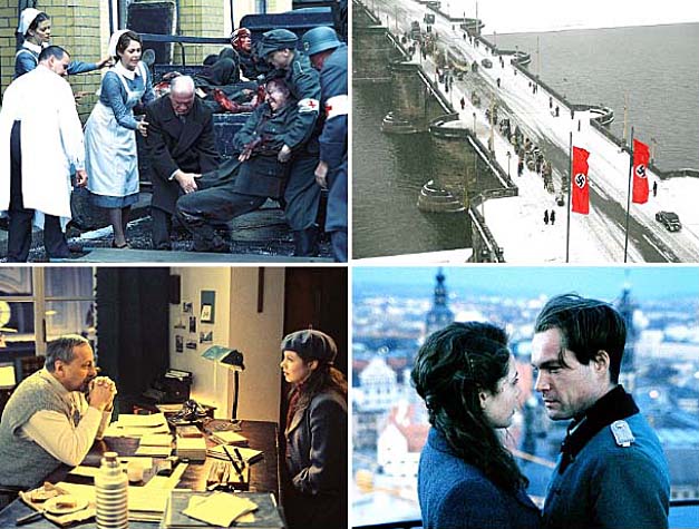 Mit grimmigem Blick und einem blitzenden Messer in der Hand steht er vor ihr: Die erste Begegnung, die Krankenschwester Anna (Felicitas Woll) mit dem abgestürzten Bomberpiloten Robert (John Light) im Keller des Hospitals hat, könnte nicht bedrohlicher sein. Und doch verliebt sich die Deutsche, die eigentlich mit Oberarzt Alexander (Benjamin Sadler) liiert ist, in den feindlichen Flieger...Wie in anderen TV-Eventmovies der letzten Zeit wird auch hier der historische Hintergrund über eine Dreiecksgeschichte aufgerollt. Im Gegensatz aber etwa zur "Luftbrücke" ist das Szenario komplexer und krasser: An den Straßenlaternen sieht man aufgehängte Juden, einmal entkommt Heldin Anna selbst nur knapp einer standrechtlichen Erschießung. Zudem erfährt sie, dass ihr Vater (Heiner Lauterbach) das Morphium für die Verwundeten an süchtige Nazi-Bonzen verschiebt. Kurz darauf starten die Briten ihren verheerenden Doppelschlag gegen Dresden... |