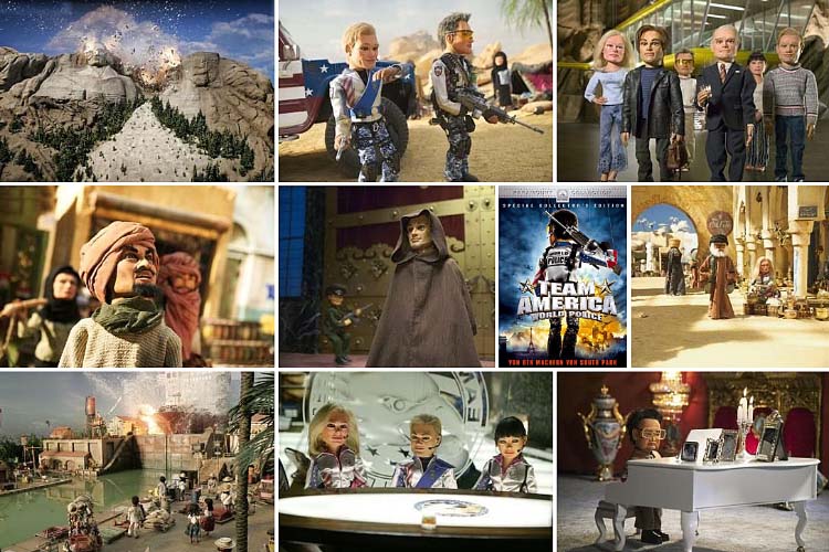 Bei der Verteidigung der Freiheit darf man nicht zimperlich sein. Im Kampf für die westlichen Grundwerte sind Kollateralschäden zu akzeptieren. So liegt das Weltkulturerbe bald dort in Trümmern, wo das „Team America“ auftaucht: Erst macht man Paris samt Eiffelturm platt, dann die Pyramiden. Nun hält eine neue Bedrohung die Helden in Atem: Diktator Kim Jong-Il will mit linken Verbündeten aus Hollywood (u.a. Tim Robbins, Sean Penn) die Welt erobern. Da kann nur Team-Neuling Gary helfen, schließlich ist er Broadway-Star… Rambo trifft Robbi, Tobbi und das Fliewatüüt: Die „South Park“-Macher Trey Parker und Matt Stone lassen in dieser 32-Millionen-Satire die Marionetten wüten und nehmen das US-Brechstangen-Pathos aufs Korn. Dabei zitieren sie stilsicher aus Patriotismus-Blockbustern wie „Pearl Harbor“ und garnieren den Puppenkistenterror mit Witzen über die US-Unterhaltungsindustrie. |