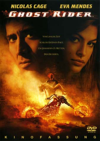 Nicolas Cage ist der Ghost Rider, ein Motorrad-Stuntman der seine Seele verkauft und in der Folge in der Gestalt eines feurigen Dämons durch die Nacht jagt. Es ist vermutlich nur konsequent, dass Cage sich ausgerechnet diesen Stoff ausgesucht hat. Schließlich ist es kein Geheimnis, dass der eigenwillige Star eine gigantische Comicsammlung besitzt und sich als Biker begreift, der am liebsten mit der Harley bei seinem Agenten vorfährt. In Regisseur Mark Steven Johnson hat er einen Partner gefunden, der bereits mit Daredevil einen weiteren Stoff aus dem beinahe unerschöpflichen Fundus des Marvel Comics Backkatalogs verfilmt hat. Ob den Beiden eine ansprechende Umsetzung gelungen ist, darüber kann man geteilter Meinung sein. Johnny Blaze (Nicholas Cage) ist ein berühmter Stuntman, ein in Leder gekleideter Desperado, der in seiner gigantischen Bikeshow ein halbes Footballfeld aus Black Hawk Helikoptern überspringt, sich vor dem Spiegel in endlose Monologe verstrickt und die Carpenters hört mit anderen Worten, ein reichlich durchgeknallter Typ. Als sein Vater im Sterben liegt, verkauft er seine Seele an den Teufel und ist gezwungen Nacht für Nacht mit brennendem Schädel das Böse dieser Welt zu bekämpfen. Er muss die begehrenswerte Roxanne (Eva Mendes), die große Liebe seines Lebens, aufgeben und findet schließlich in Blackheart (Wes Bentley), dem Sohn des Teufels persönlich, seine finale Herausforderung.