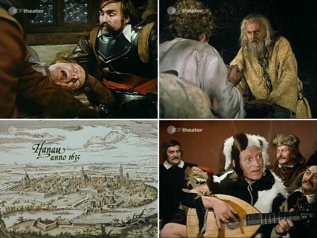 Unwissend und glücklich, fern von allem Weltgetriebe, wächst der Knabe Simplizissimus bei einfachen Bauern im Spessart auf. Die Idylle wird vom Krieg blutig zerstört. Ein frommer Einsiedler erbarmt sich des Waisen, lehrt ihn lesen, schreiben und eine herzliche, offene Frömmigkeit. Von der letzteren freilich, als der Krieg ihn unter die rauen Soldaten der Festung Hanau verschlägt, hat er nur Schaden und Spott. Eingenäht in eine Tierhaut wird er zum "Kalb", zum Narren des Gouverneurs. In der belagerten Stadt wütet der Hunger. Was hilft es dem Geschundenen, als ihm zusammen mit seinem Freund, dem Schreiber Herzbruder, die Flucht nach draußen gelingt? Im Kroatenlager führt ja derselbe Soldatenbrauch sein rohes Regiment. Herzbruder wird ungerecht verjagt, dessen Vater ermordet, und am Ende liegt selbst der brave Simplizissimus halb erschlagen und ringt mit dem Tod.