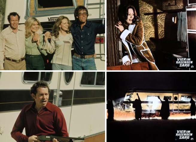Vier im rasenden Sarg(Urlaub in der Hölle) (Race With the Devil) Zwei befreundete Ehepaare sind gemeinsam unterwegs in den Urlaub. Während ihres Zwischenstopps in einer abgelegenen Gegend werden die vier zufällig Zeugen eines okkulten Rituals, bei dem ein Menschenleben geopfert wird. Dann werden die zwei Paare von den Mitgliedern des Geheimbundes entdeckt und gnadenlos gejagt. - Die Schlachtplatte ist angerichtet: Actionhorror mit jeder Menge Schockmomente und dem "Easy Rider"-Star Peter Fonda.