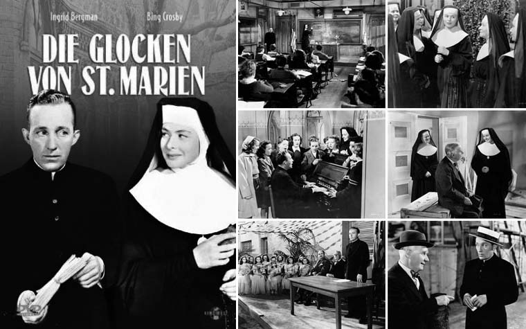 Die Glocken von St. Marien(The Bells of St. Mary’s) Schauplatz dieses anrührenden Films ist St. Marien, eine von Nonnen geleitete Gemeinde, in der durch finanzielle Nöte vieles im Argen liegt. Das ändert sich, als Pastor O’Malley (Bing Crosby) auftaucht und mit seiner weltlichen Offenheit der Misere ein Ende setzen will. Dabei geht er allerdings etwas allzu weltlich vor, was der überaus religiösen Oberin Schwester Benedict (Ingrid Bergman) gar nicht behagt. Während der Filmhandlung kommen sich die beiden jedoch auf halbem Wege entgegen. »Als Schwester Benedict ist Ingrid Bergman von schönem Ernst… Dass ihre Heiligkeit sehr nach Hollywood schmeckt, ist des Drehbuchs Schuld, nicht die ihre. Auch ist sie als Oberin einer Gemeindeschule doch ein bisschen zu jung.« (New York Times)