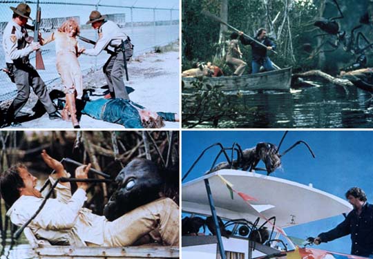 In der Gewalt der Riesenameisen(Empire of the Ants) Die Grundstücksmaklerin Marilyn Fryser (Joan Collins) ist mit einigen Kunden im Sumpfland Floridas unterwegs. Was die Gruppe nicht weiß: Dort wurde ein Ameisenvolk radioaktiv verseucht und mutierte zu gigantischen Monstern. Bald greifen die Riesenameisen auch die Menschen an. Trashiger B-Film von Genreregisseur Bert I. Gordon