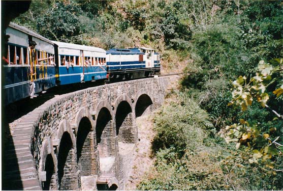 Unterwegs mit Indiens „Toy Trains”1. Die Kalka-Shimla-Bahn Durch die spektakuläre Gebirgslandschaft in den Ausläufern des Himalaya klettert die Kalka-Shimla-Bahn rund 1.500 Meter in die Höhe, dabei passiert sie auf einer Strecke von knapp 100 Kilometern 103 Tunnels, fährt über 864 Brücken und durch 919 Kurven. Rund sechs Stunden ist der Zug unterwegs von der Kleinstadt Kalka nach Shimla, der Hauptstadt des indischen Bundesstaates Himachal Pradesh. Trotz der langen Fahrzeit lieben die Anwohner die Bahn ebenso wie die Touristen, die die 1864 erbaute Strecke im Norden Indiens besuchen.