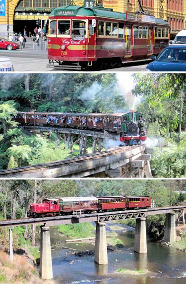 Die Reise durch Australiens Süden beginnt mit einer Fahrt in der Luft. Schon Mitte des 19.Jahrhunderts startete der erste Heißluftballon über Melbourne, und so ist es fast schon Tradition, zum Sonnenaufgang über die Hauptstadt des Bundesstaates Victoria zu schweben. Unten in der Millionenstadt rattert die City Circle Tram, eine historische Straßenbahn aus den 50er Jahren des 20. Jahrhunderts. Touristen und Einheimische nutzen die kostenlosen Fahrten rings um die Innenstadt herum zu einer entspannten Sightseeing-Tour. Rund 40 Kilometer südöstlich von Melbourne, in den Eukalyptus- und Farnwäldern der Dandenong Ranges, ist Puffing Billy zuhause, Australiens wohl beliebteste Dampfeisenbahn. Was in Europa unter keinen Umständen erlaubt wäre auf der 24 Kilometer langen Strecke zwischen Belgrave und Gembrook sitzen die Passagiere sitzen auf den halboffenen Wagen und hängen ihre Beine heraus. Die Originalstrecke des Puffing Billy wurde 1900 in Betrieb gesetzt und ist eine von vier Schmalspursbahnen, die die Staatsbahn Victorian Railway zu Beginn des 20.Jahrhunderts ins Landesinnere gebaut hat. Eine zweite dieser Schmalspurbahnen ist die Walhalla Goldfields Railway, rund 180 km östlich von Melbourne. Sie führte einst von Moe bis Walhalla, eines der seinerzeit reichsten Goldgräberstädte Australiens. In den 50er Jahren wurde die Strecke stillgelegt. Heute ist Walhalla der Geheimtipp unter den Victorianern in Sachen Heimatgeschichte und die Bahn fährt wieder als Museumsbahn durch die wilde Schlucht des Stringer's Creek. Eine dritte Museumsbahnliegt an der wilden Westküste von Australiens südlichstem Bundesstaat, der Insel Tasmanien. Der Name der Bahn ist Programm: West Coast Wilderness Railway. Sie führt von der Kupferminenstadt Queenstown durch den Regenwald Tasmaniens nach Strahan, einer kleinen Hafenstadt am Macquarie Harbour. Eine Fahrt auf dieser Strecke ist für jeden Freund wilder Naturlandschaften ein grandioses Erlebnis und ist er dazu noch ein Dampflokfan, dann wird er von dieser Bahn auf ewig schwärmen! Auf dieser Reise durch Australiens Süden treffen wir in der Tierpflegestation Healesville Sanctuary auf all jene Tiere, die wir in Australien erwartet hatten, aber auf freier Wildbahn nicht zu Gesicht bekamen. Außerdem besuchen wir ein altes Sägewerk, das den ältesten Baum der Welt zersägt: die Huon Pine, eine Kieferart, wächst nur in den Regenwäldern von Tasmaniens Westküste und steht heute unter dem Schutz der Unesco. Und zu guter Letzt sind wir dabei, als Tasmanien einen neuen Weltrekord aufstellt: 114 Wasserskifahrer gezogen von einem einzigen Boot.