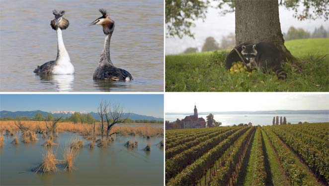 Der Wasserkörper des Sees ist so mächtig, dass er das Klima der ganzen Umgebung beeinflusst: Die Bodenseeregion ist spürbar milder als die Alpengebiete in Sichtweite. Mildes Klima zieht Mensch und Tier gleichermaßen an. Das Faszinierende in dieser Region: keiner scheint dem anderen seinen Platz streitig zu machen. Gefördert durch Renaturierungsmaßnahmen entstand allmählich wieder eine Wildnis am großen See.