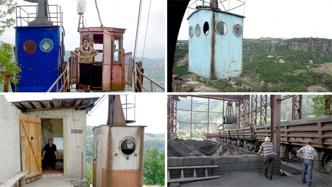Das Seilbahnnetz, das das georgische Bergarbeiterstädtchen Tschiatura im Kaukasus durchzieht, zählt zu den marodesten der Welt. Zur industriellen Blütezeit des Ortes in den 50er und 60er Jahren erbaut, gleiten sie noch heute in schwindelerregender Höhe knarzend über steile Abhänge, tiefe Schluchten und die Dächer des Ortes. Als einziges öffentliches Transportmittel prägen sie den Alltag der 16.000 Einwohner. Zugleich sind die Seilbahnen existenziell für den Betrieb der nahegelegenen Manganmine, den größten Arbeitgeber in der Region. Nun sollen die Gondeln durch neue Modelle ersetzt werden. Einmal pro Woche klettert der Mechaniker Amiran Bareladze auf das Dach der Gondeln und ölt in voller Fahrt die Rollen der Seilbahn. In schwindelerregender Höhe schwebt der 57-Jährige über die Stadt Tschiatura, deren Einwohner ihre Seilbahnen im Scherz "metallene Särge" nennen. Für sie sind sie trotzdem das Nahverkehrsmittel schlechthin. Die Stützen, Masten, Laufwerke, Aufhängungen, Rollen und Seile der gesamten Anlage gehen zurück bis in die 50er Jahre, als Georgien noch zur Sowjetunion gehörte, die dort große Mengen Manganerz fördern ließ. Stalin hatte das Transportnetz für Mensch und Material spannen lassen, um zu demonstrieren, dass sowjetische Ingenieurskunst imstande wäre, selbst die widrigen geografischen Gegebenheiten der von steilen Hängen und tiefen Einkerbungen durchschnittenen Stadt zu überwinden. Die meisten Gondeln sind inzwischen dem Rost zum Opfer gefallen, doch einige wenige Linien versehen weiterhin ihren Dienst. Nun plant der Gouverneur der Region eine Modernisierung der Seilbahnen ein Vorhaben, das von den Einwohnern mit einer Mischung aus Euphorie und Sorge gesehen wird. Einerseits bewegt sich der Ort damit in Richtung Zukunft, andererseits könnten Arbeitsplätze wie der von Amiran Bareladze abgebaut werden. Und ob die Fahrt für die Einwohner dann weiterhin kostenlos bleibt, ist ebenfalls fraglich.