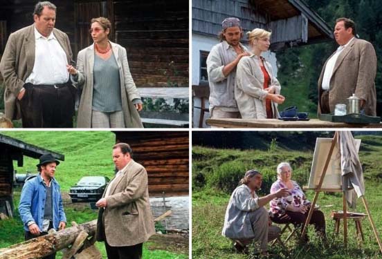 Malen mit Vincent Mit Seminaren hält sich der attraktive Kunstmaler Förnbacher (Martin Feifel) über Wasser: "Malen mit Vincent"! Seine Kursteilnehmer bringt er in der Herberge von Resi Berghammer (Ruth Drexel) unter. Doch schon der erste Maltag in freier Natur fordert ein Opfer: Immobilienmaklerin Hanna (Saskia Vester) findet die schöne Katja, die auf Vincent scharf war, am Fuß eines Felsen. Benno fragt sich: Was haben Vincents Bruder und dessen Freundin mit dem Fall zu tun? Ein "kurzes, unvollständiges Studium der Rechte" verzeichnet Kabarettist Ottfried Fischer in seiner Vita. Auf Mörderjagd geht er dennoch: Seit 1996 sind die Krimiausflüge in die bayrische Provinz ein TV-Hit. |