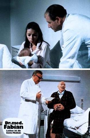 | Oberarzt Dr. Fabian (Hans-Joachim Kulenkampff) ist bei Patienten, Studenten und seinem Chef beliebt. Dienstliche und private Probleme heilt er mit einer bewährten Therapie: dreimal täglich lachen. War nicht nur als Showmaster ein Ass: "Kuli" als charmanter Arzt ideal besetzt. |